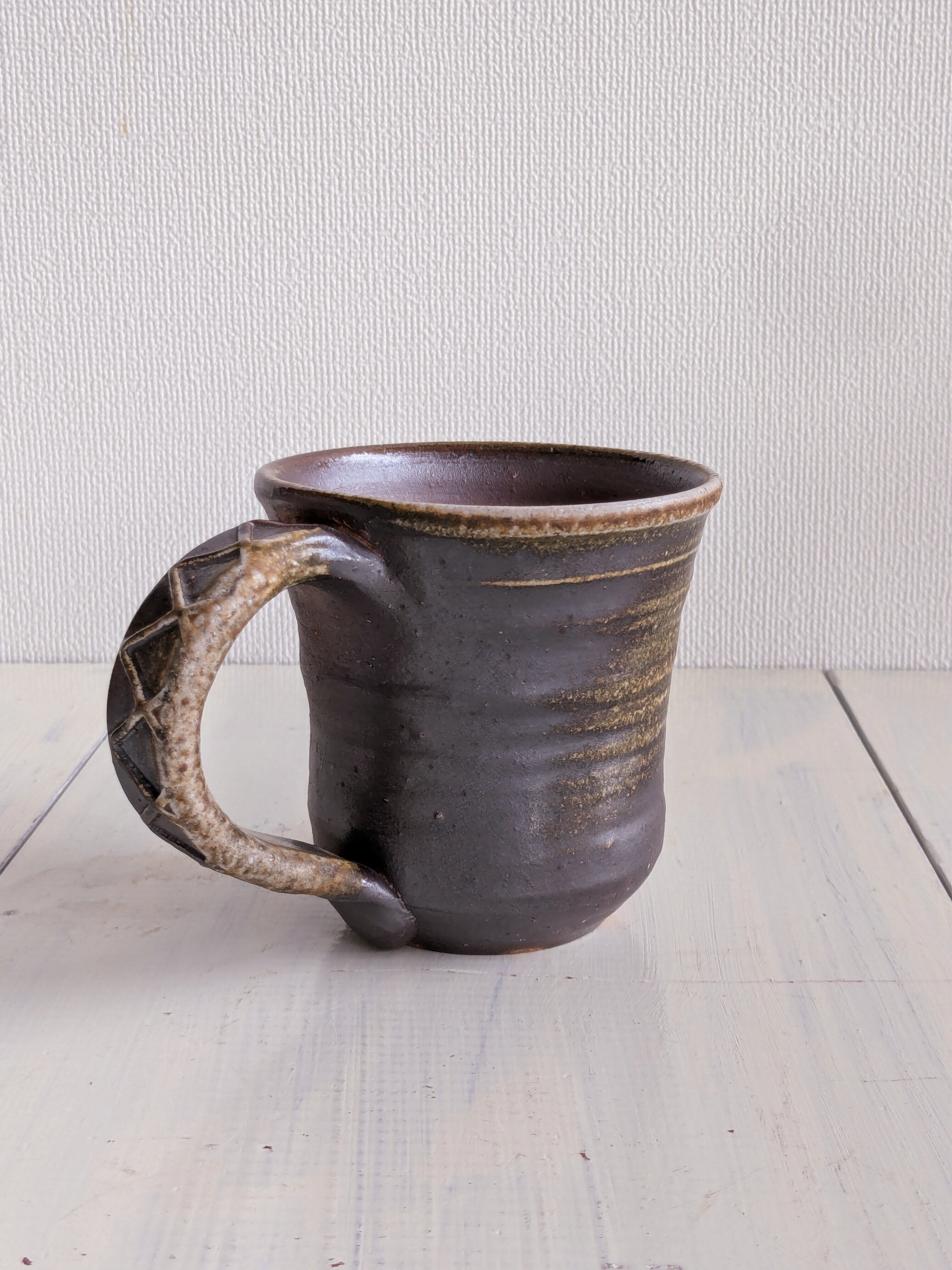 窯内でかかった灰により、2つと無い景色を作り出しています。やや大きめのサイズでコーヒーをたっぷり飲む方にオススメです。