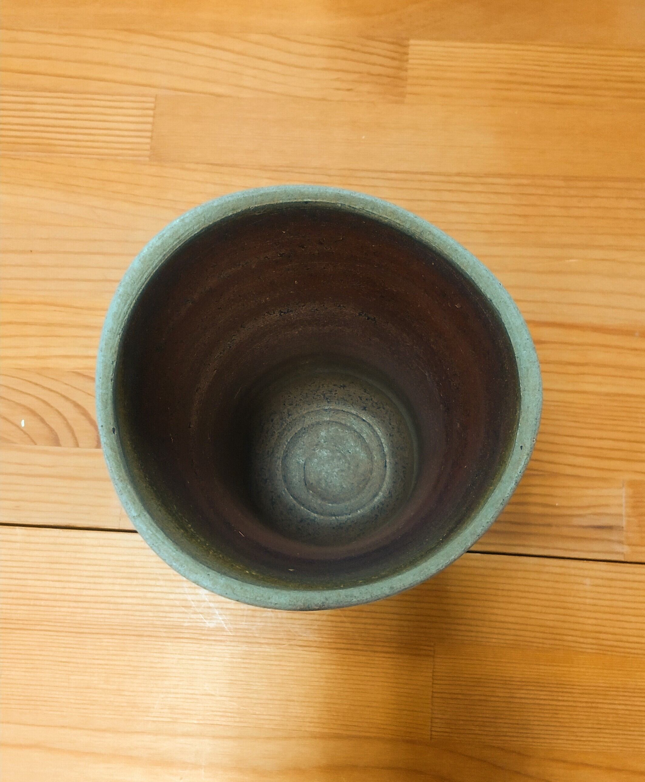 土は焼き締まりの良い様に幾つかの種類をブレンドしています。部分的に灰がかかり、薪の炎による自然な模様が入っており、一つとして同じものはできません。一つ一つ丁寧にろくろでひき、口元はなだらかな曲線を作りました。穴窯の強い火で焼いているので、変形しているものもあります。焼締めならではの土の風合いをお楽しみいただけますと幸いです。